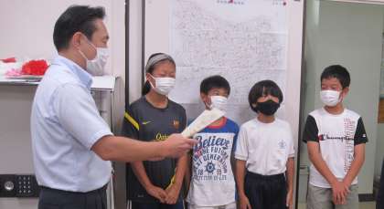 全校朝会のはじめに、2学期から本校に転入した児童が自己紹介をしました。学校長は、子どもたちに向けて、「みなさんの大切なからだと心を守るためのお話」をしました。また、夏休みに実施した「アドベンチャーin多摩川」に参加した子どもたちをチームごとに紹介し、記録証を渡しました。