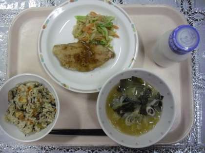 今日のメニューは、ひじきご飯、鯵の南蛮漬け、野菜のゴマだれかけ、味噌汁、牛乳でした。