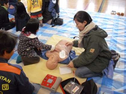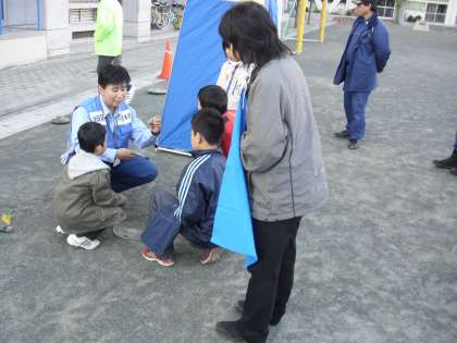 体育館のスペースやバナーの付け方など、いろいろ体験をしていただきました。