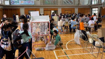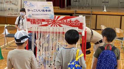 体育館は、感染症対策を講じた上で、25分ずつ、150人まで等の工夫をして実施しました。『福引 千本つり大会』は、人気のコーナーでした。『昔あそび』は、新BOPのみなさんが担当しました。