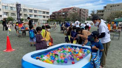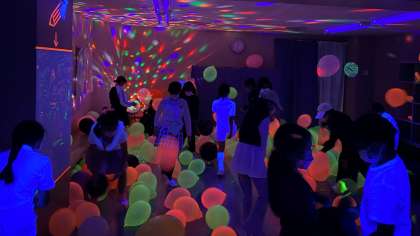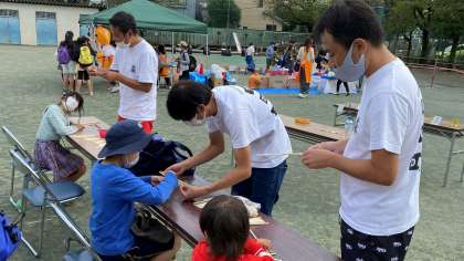 『光るお部屋』では、子どもたちは異次元空間に迷い込んだ感じで、心も体も開放して楽しんでいました。『ヨーヨー釣り』『射的』では、お祭りの雰囲気で、子どもたちの笑顔が印象的でした。3つのコーナーは、おやじの会のみなさんが担当しました。