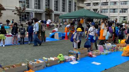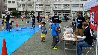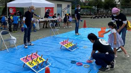 『競技用わなげ』『バスケット玉入れ』『クレーンゲーム』では、子どもたちは、景品をGETしようと、一生懸命がんばっていました。3つのコーナーは、ザ・サンダーのみなさんが担当しました。バザーでは、子どもたちが欲しそうな品物がたくさん並んでいました。PTA保護者のみなさんが担当しました。