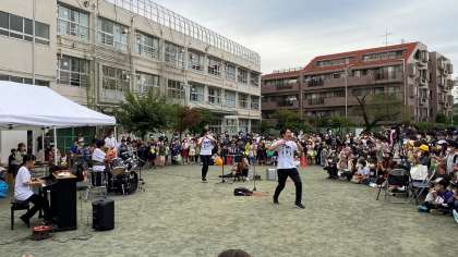 最後の舞台は、『おたま〜ず』(せんせいバンド)です。おもしろパフォーマンスに子どもたちは大喜びでした。大盛況、大成功で3年ぶりの「玉堤フェスタ」を終えることができました。開催準備に携わったPTAのみなさま、おやじの会の皆様に感謝申し上げます。