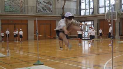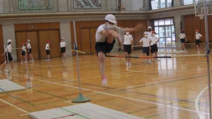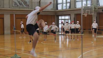 走り高跳びの学習を進めています。助走のリズムを体得し、バーを超す時の身のこなしも上達してきました。友達の応援の中、自己新記録に挑戦していました。
