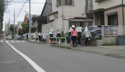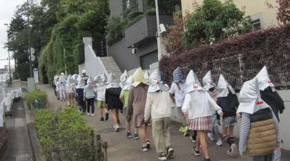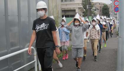 地震による河川津波を想定した訓練を実施しました。写真は、第2次避難場所へ移動している様子です。