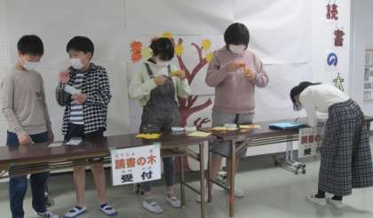 10月21日(金)まで、読書週間を実施しています。図書委員が中心となり、『スタンプラリー』『読書の木』『読書郵便』『先生方のおすすめする本』『図書委員の読み聞かせ』などのイベントを行っています。