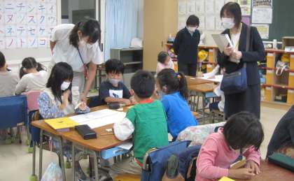 『あきといっしょに』の学習を進めています。これまでの活動を振り返り、できたことや、やってみたいことを考えて伝え合いました。