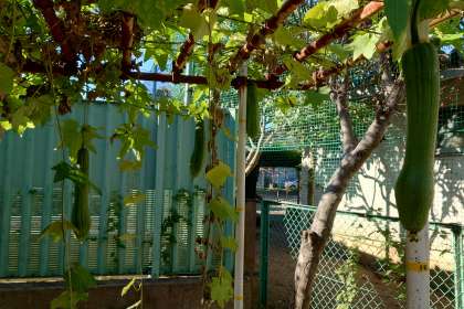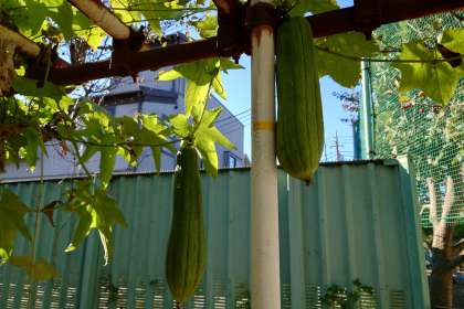 朝晩の寒暖の差が大きくなってきましたが、ヘチマが大きく育っていす。(10月31日)