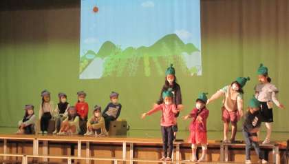 衣装を身に付け、気持ちを入れて表現しています。照明を効果的に活用しました。
