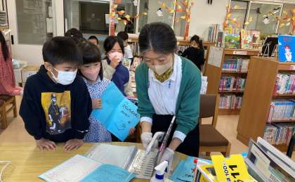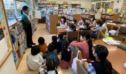『なんげえはなしっこしかへがな』の絵本を図書館司書が子どもたちに読み聞かせをしました。津軽弁での朗読に子どもたちは物語の世界へ、引き込まれていました。後半は、自分が読みたい本を選んで、読みました。