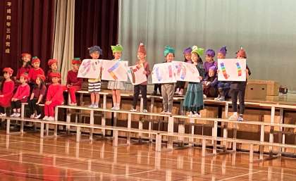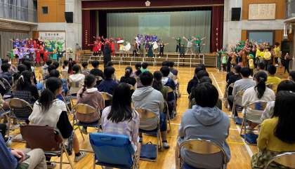 6年生が応援する中、最後の確認をしました。『はじめの言葉』は1年生が担当します。