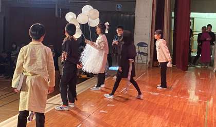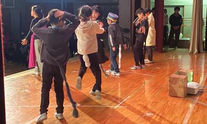 5年生『舞台袖より』照明、幕の開け閉めなども自分たちで行っています。