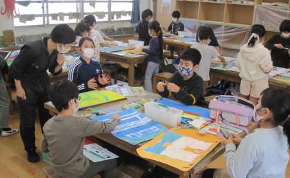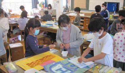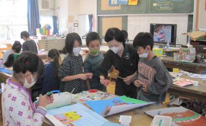 子どもたちは、『ぺたん ぺたん ハウス』づくりに夢中になって取り組んでいます。様々な素材を活用して、「ペタン」と色をつけていきます。今日は、ペタンの形を工夫して、ハウスを仕上げていきました。