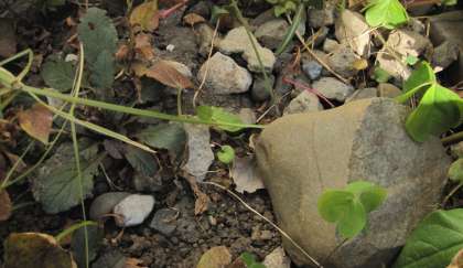 『ほんもの ど〜れだ?』 石粉粘土で本物そっくりの石を作りました。本物をよくみて、感じて色をつけました。作品を校庭に置いて、写真を撮りました。さて、作り物の石はどれでしょう?