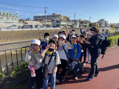 いよいよ、遠足です。次大夫堀公園まで、長い道のりを歩きます。