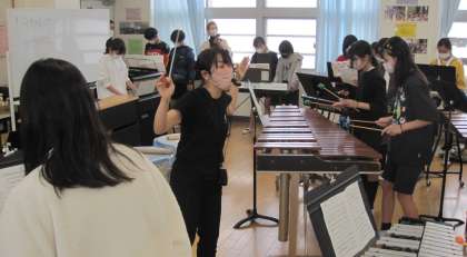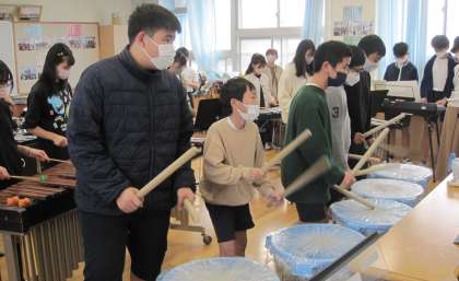 「千本桜スペシャル」の演奏を楽しんでいます。パートごとに練習を重ね、最後にクラスのみんなで合わせて合奏しました。早いテンポで迫力のある演奏が印象的でした。