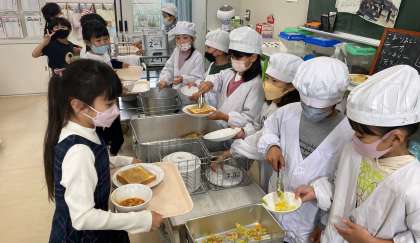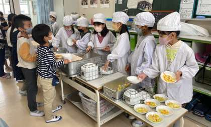 限られた時間の中で協力して、てきぱきと配膳しています。