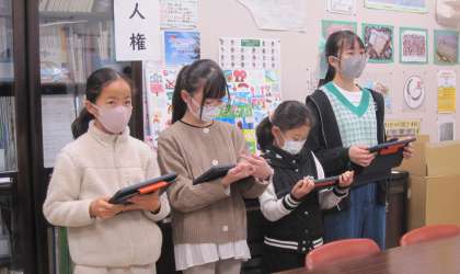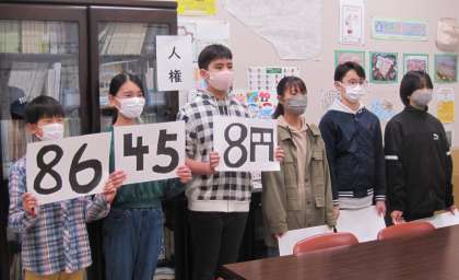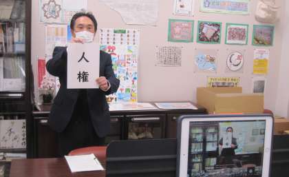 学校長は、金子みすゞさんの詩「こだまでしょうか」を朗読して、『人権』についてお話しました。代表委員は、ユニセフ募金で集まった金額について報告しました。運動委員は、なわ跳び週間についての紹介をしました。