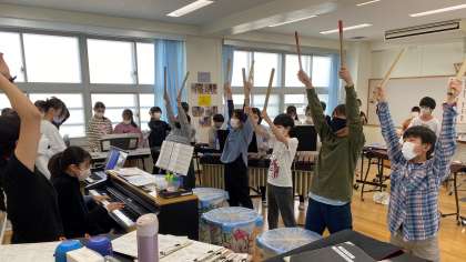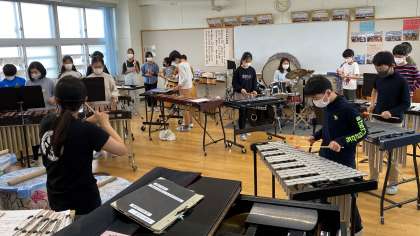 『千本桜スペシャル』の合奏に取り組んでいます。クラスごとにアレンジが違うので、それぞれのクラスのよさが表現された演奏になっています。