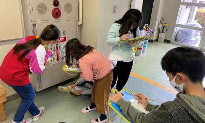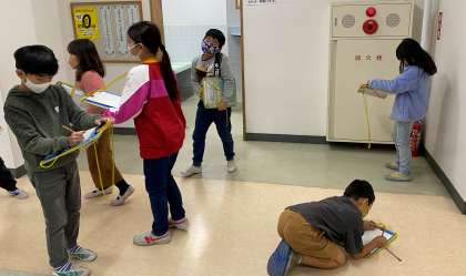 『安全なくらしを守る』の学習を進めています。今日の課題は「火事が起きないように工夫していることを調べよう」です。校舎内を調べ、意欲的にメモを取っていました。