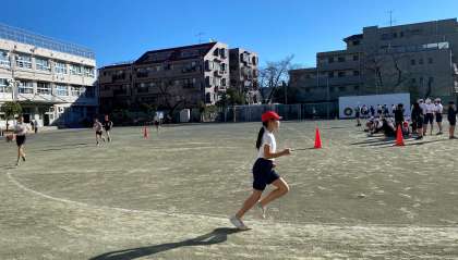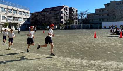 持久走の学習に取り組んでいます。高学年は、持久走記録会で校庭を12周走ります。今日は8周のタイムを計測しました。