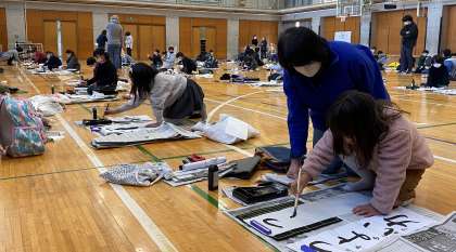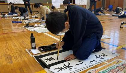 12月26日(月)書き初め練習教室を実施しました。3学期の席書会に向けて、一生懸命練習していました。どのような筆遣いをしたらよいか、地域の方に積極的に聞きながら取り組んでいました。