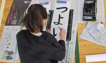 3年生のねらいは「点画の筆使いに注意して書く」です。お手本をじっくり見て、文字を整えて書いていました。