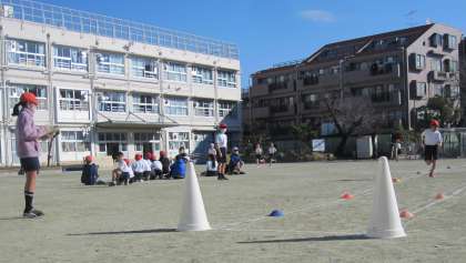 持久走記録会で4年生は校庭を10周走ります。今日は3グループに分かれて、タイム計測をしました。自分のペースをつかんで、粘り強く取り組んでいました。