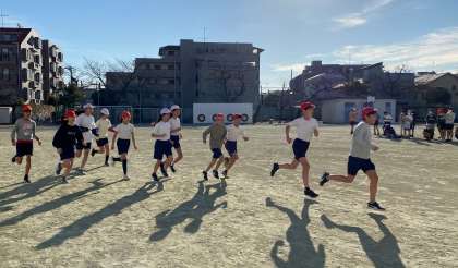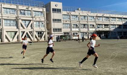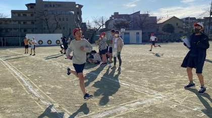 高学年は、持久走記録会で校庭を12周走ります。友達のラップタイムも記録して、タイム計測をしました。最後までぴったり同じペースで走れている子もいました。