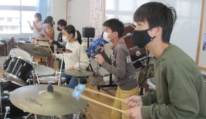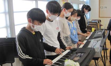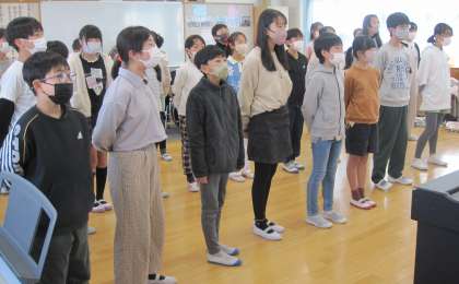 卒業式で歌う「旅立ちの日に」「校歌」を『ビューティフル&パワフルに』を合言葉に歌いました。合奏「千本桜」は冬休みを挟んで久しぶりに全体で合わせましたが、速いテンポで迫力のある演奏をすることができました。
