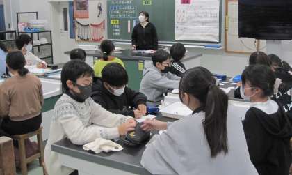 「水溶液のなかま分け」について学習を進めています。今日は、食塩水・うすい塩酸・炭酸水・うすいアンモニア水の4つの水溶液は、リトマス紙でいくつになかま分けできるか、実験をして調べました。