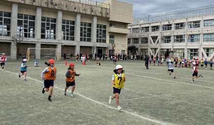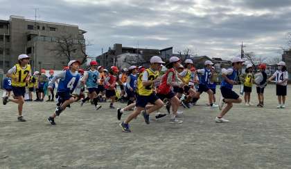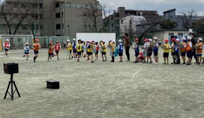 3年生は、一人一人が自分のペースで記録に挑戦します。保護者の温かい応援に励まされ、校庭10周を走り切りました。