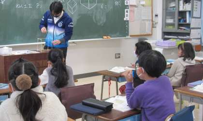 「はこの形」の授業、第1時間目。はこの面の形や数を調べました。ひごとねんど玉を使って、辺や頂点の数を確認しました。