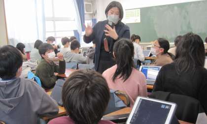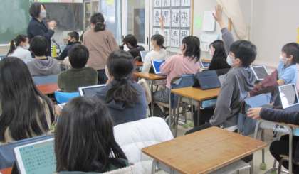 朝日学生新聞社の編集長の方をお招きして、授業を行いました。「編集の仕事について」「新聞記事について」「新聞のつくりかたについて」など、子どもたちは熱心に質問し、編集者の方は、ていねいにお話してくださいました。