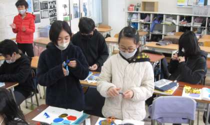 円の形の紙をぴったり重なるように折っていき、弧の部分に定規で直線を引いて切りました。さて、どんな形になるでしょう。