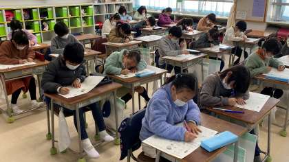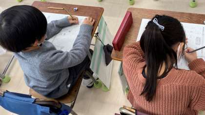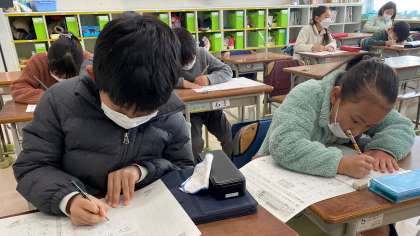 今までに学んだ漢字の復習をしています。子どもたちは丁寧に書くことを心がけ、集中して取り組んでいました。