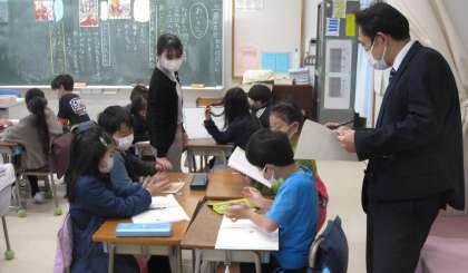 「あいさつっていいね」を主題に、教材『あいさつがきらいな王さま』を読み、あいさつをすることのよさについて、考えました。自分の経験を振り返りながら、あいさつの大切さやよさについて、友達と意見交換しながら深く考えていました。