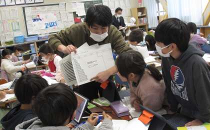 世田谷区の小学校はどのように移り変わってきたのかを資料をみて、考えました。班の友達と意見交換しながら、人口が増えたことに合わせて、小学校の数が増えてきたことを捉えることができました。