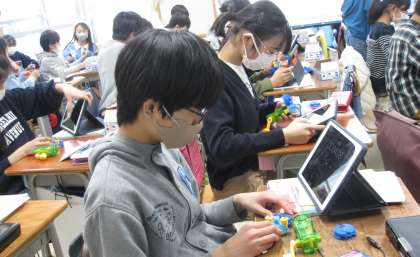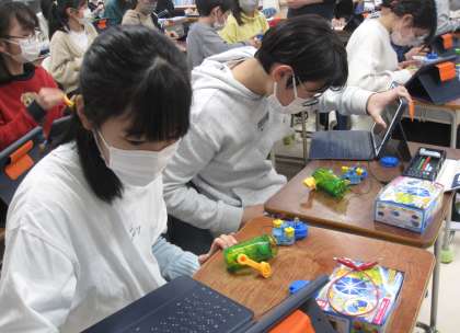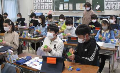 「電気と私たちの生活」について学習を進めています。コンデンサーにためた一定量の電気で、つないだ豆電球と発行ダイオードで電気の使われ方に違いがあるか、実験をして調べました。