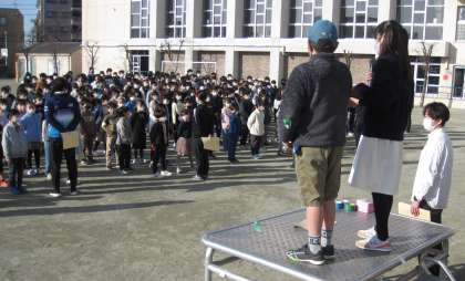 全校児童が校庭に集まり、集会活動を行うのは、3年ぶりになります。クラス対抗『宝探しゲーム』を行い、子どもたちは楽しそうでした。