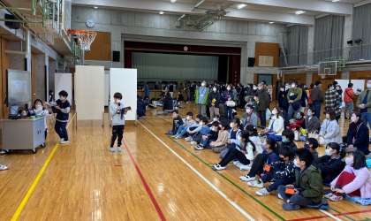 1年間を通して学んできた「等々力渓谷」「多摩川」「バイオミメティクス」について、児童が役割分担をして、グループごとに発表しました。発表方法を工夫し、学んできたことを少し緊張しながら、熱心に伝えていました。