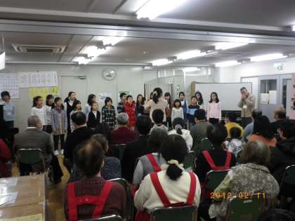 11日、施設公開日に、本校の子どもたちが「合唱」を披露しました。高齢者の皆さんに喜んでいただくました。