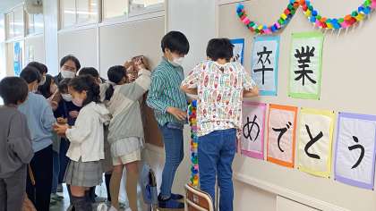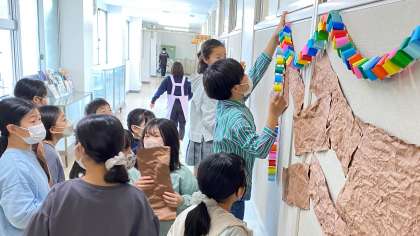 廊下や階段の掲示板を活用して、環境を整えています。5年生が活躍しています。