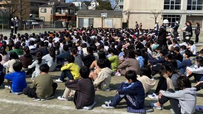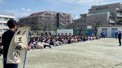 地震を想定した避難訓練を実施しました。今年度最後の訓練になります。3分50秒で全校児童の安全を確認することができました。