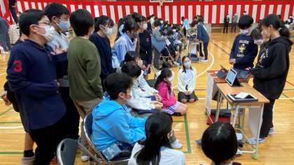 『玉堤の未来を考える〜玉堤CSR〜』 6年生の子どもたちが設定したテーマは、地域活性化、後継者問題、食品ロス、水害、交通安全、生物・フン害、ごみ問題、福祉・施設、外来種、少子高齢化、ポイ捨て、物価高騰、技術〜まちづくり〜・・・などです。玉堤の未来について真剣に考え、自分の考えを一生懸命伝えていました。