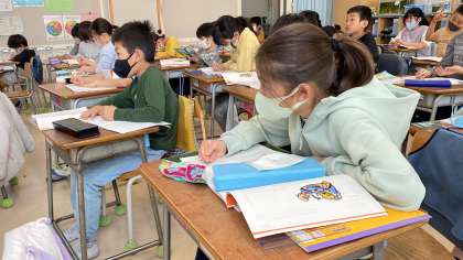 「モチモチの木」 最後の場面を読み、登場人物の行動から人物像を捉えていきました。子どもたちは、優しさと勇気について積極的に意見を述べていました。