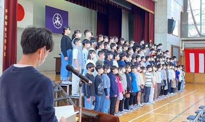 卒業式で呼びかけを行うのは、3年ぶりになります。子どもたちが6年間の思い出を語っていきます。お互いの表現力の豊かさを認め合いながら練習しています。