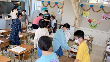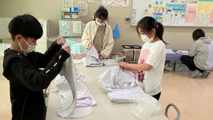 1年生の教室では飾りつけをしたり、配布物を机の上にセットしたりしていました。各クラスに配布する給食白衣の準備をしているグループもありました。6年生は意欲的に活動し、頼もしかったです。