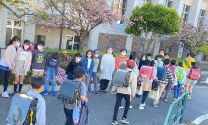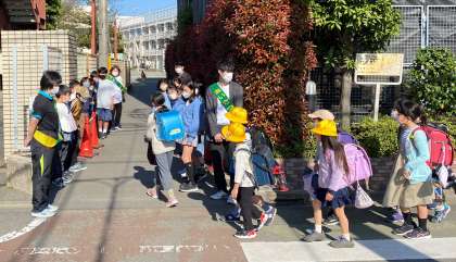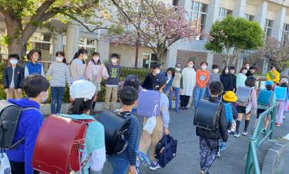 今週は、あいさつ運動を実施しています。今日は5年生が担当し、気持ちのよいあいさつをしていました。PTA保護者の皆様にもご協力をいただき、ありがとうございます。玉川警察の方と、主事が子どもたちの安全を確保し、見守っています。