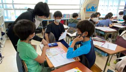 「見つめてみよう 生活時間」について学習しています。自分の1日の生活時間を調べ、課題を見付けました。